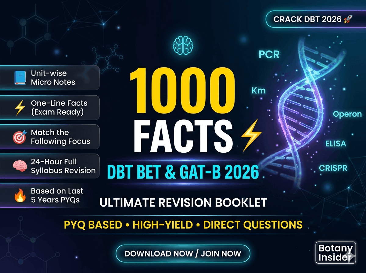 Struggling to revise the vast syllabus of DBT BET & GAT-B? This course is designed to help you revise smarter, faster, and more effectively using PYQ-based, high-yield content. What You Will Get: ✅ 1000+ High-Yield Facts (One-line, exam-ready) ✅ Unit-wise Revision Booklets (All 10 Units covered) ✅ PYQ-Based Important Topics ✅ Match the Following & Statement-Based Facts ✅ Quick Revision Format (24–48 hours full syllabus revision) ✅ Highly Structured Notes (Tables, flowcharts, keywords) 🎯 Course Benefits: Save 70% of your time by avoiding low-yield topics Master factual + direct questions (most asked in DBT) Improve accuracy in MCQs Perfect for last days revision strategy Boost your chances of selection 🚀